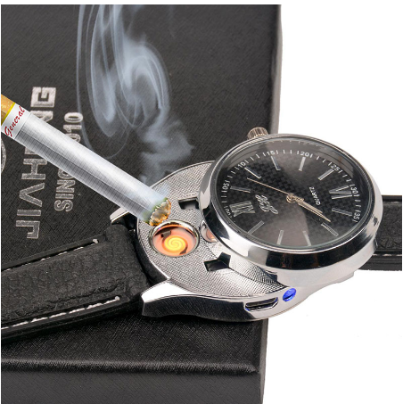 flameless electric cigarette lighter: Flameless Cigarette lighter Men's Wristwatch